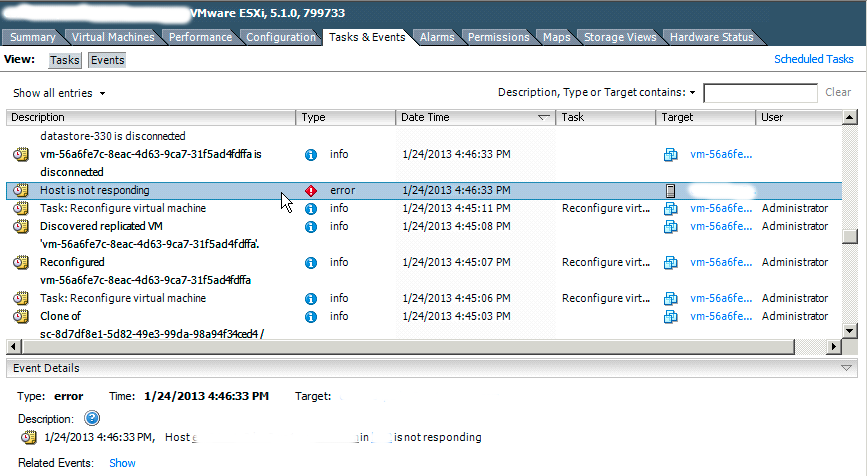 2013-01-24T16:46:33.841Z [06788 warning ‘vpxdvpxdMoHost’ opID=HB-host-378@199963-81839a33] [HostMo] host connection state changed to [NO_RESPONSE] for host-378