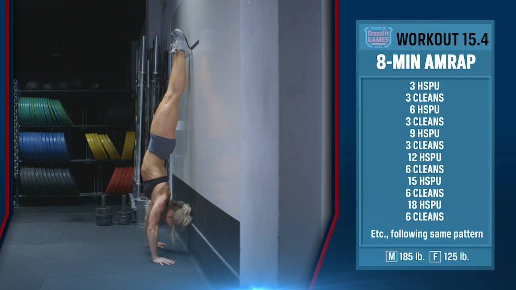 HSPUs?! In the Open?! And to start the movement?! And standards that require a close stance with the hands?! While I knew before the Open I did not really have HSPUs, I was not concerned because they had never been required in the Open. Now, a ton of them were required, and you had to start with them. While most people were complaining about the weight of the clean, I was complaining about the HSPUs. I set a goal to complete two rounds.