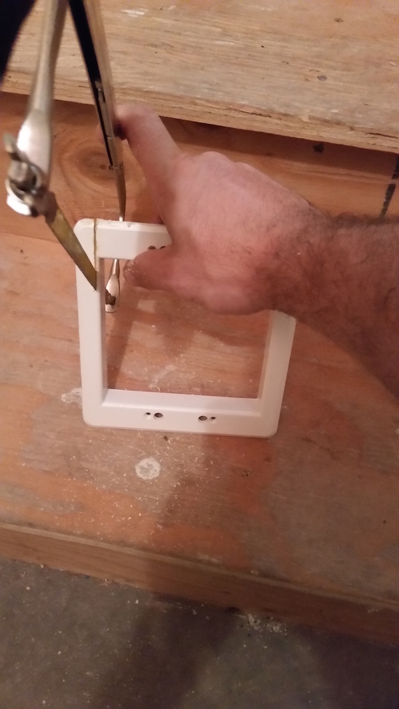 Next, I had to address the outlet cover problem. To do this, I used a hacksaw to cut one edge of the outlet cover off: