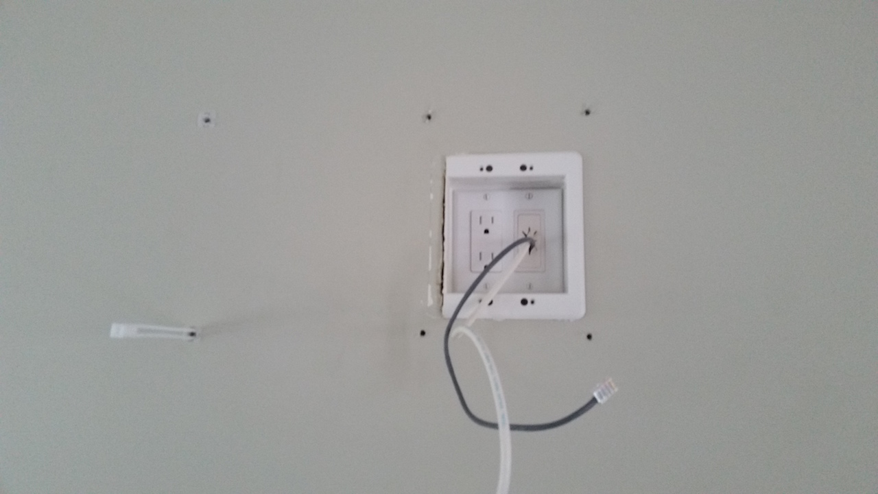 The answer was again no because of the existing outlet box. - Could lumber be added behind the drywall to better distribute the weight of the mount? YES! At the end of the day, the concern was weight against the drywall so if the weight could be better distributed then the concern could be mitigated.