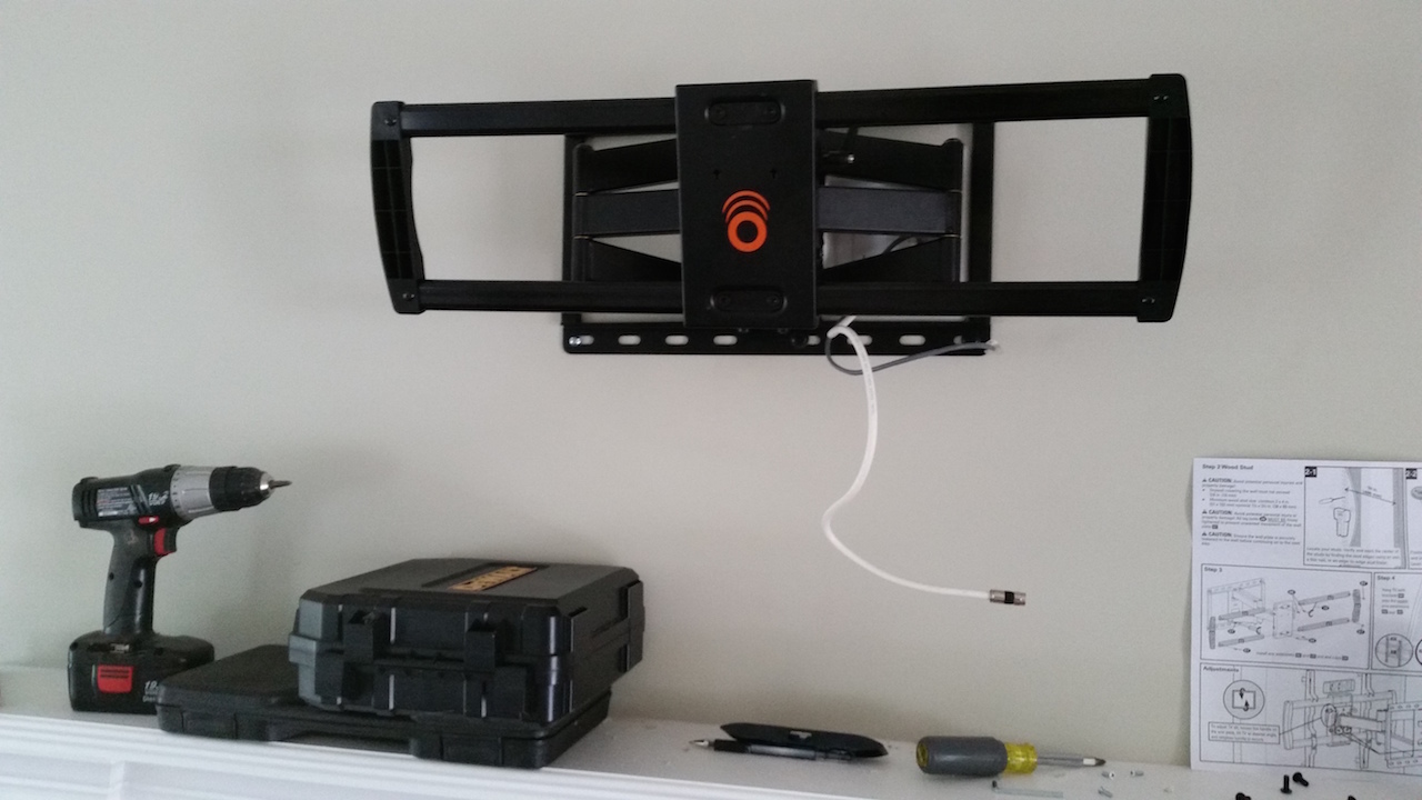 For the mount, I wanted something that was capable of turning right and left as there is a sitting area that expands into the kitchen from the angle the above picture was taken. With company coming over, I wanted the ability to turn the TV accordingly. I looked around and found such a mount: