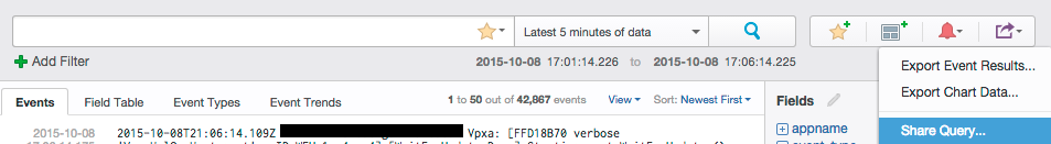 In Log Insight 3.0 the share query feature has been enhanced. Now when you select the option, you will see the long URL very briefly and then a shortened URL will be displayed: