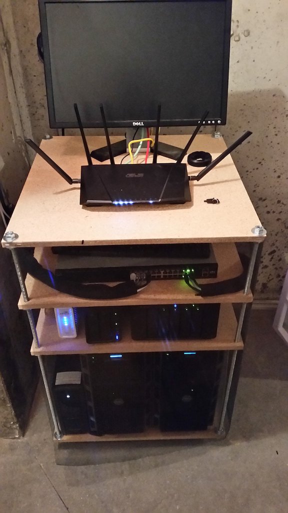 You may also notice the screen around the “rack” — I have two cats and wanted to prevent fur from bringing down or damaging the equipment.