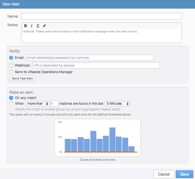 LI webhooks provide further extensibility for alerts in LI. They are simple to enable, but as of LI 3.3 do not support authentication and require a shim be written in order to translate the outputted format into a third-party understandable format. For suggestions on future enhancements to the webhook functionality, be sure to head over to the Log Insight community.
