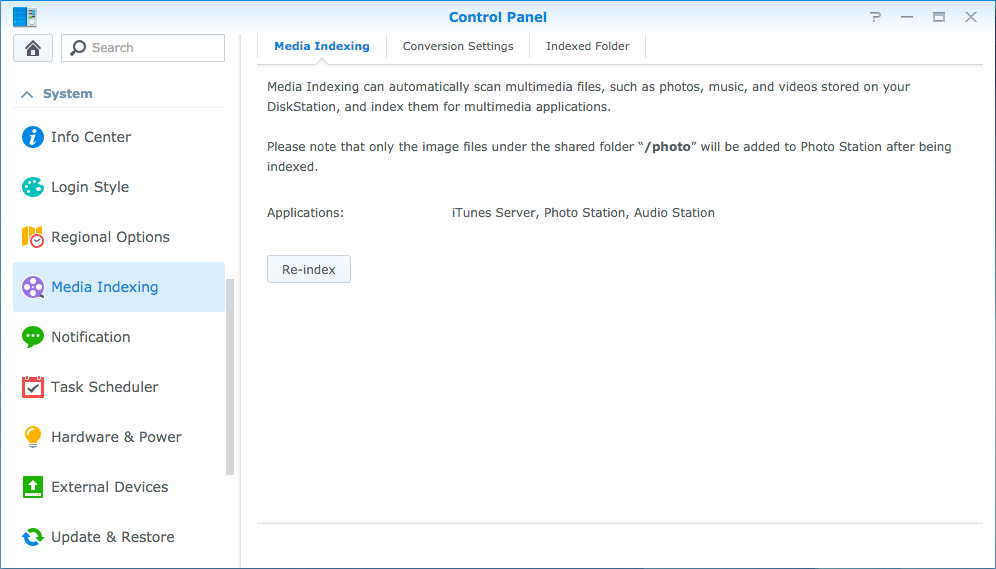 By default, DS Audio will pick up new changes automatically within a few seconds (or longer if you uploaded/changed a lot of data), but you can edit the settings by going to Control Panel > System > Media Indexing