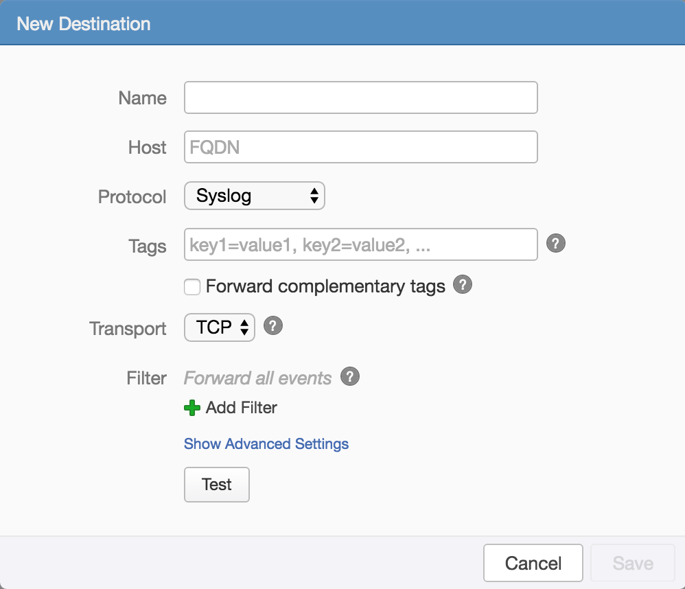 This tag capability was just like the tag capability the Log Insight agent features. If you switched to the syslog protocol for event forwarding, in order to support forwarding logs to a third-party destination, then the tags option was not available. Well, now two types of tags have been made available for the syslog protocol: