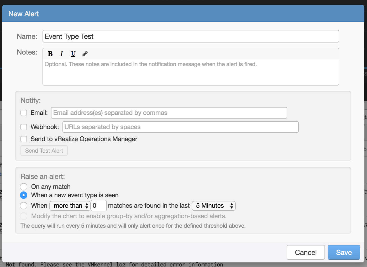 Log Insight has always featured user alerts. In Log Insight 3.6, a new threshold has been introduced: When a new event type is seen. Read on to learn more about this new threshold!