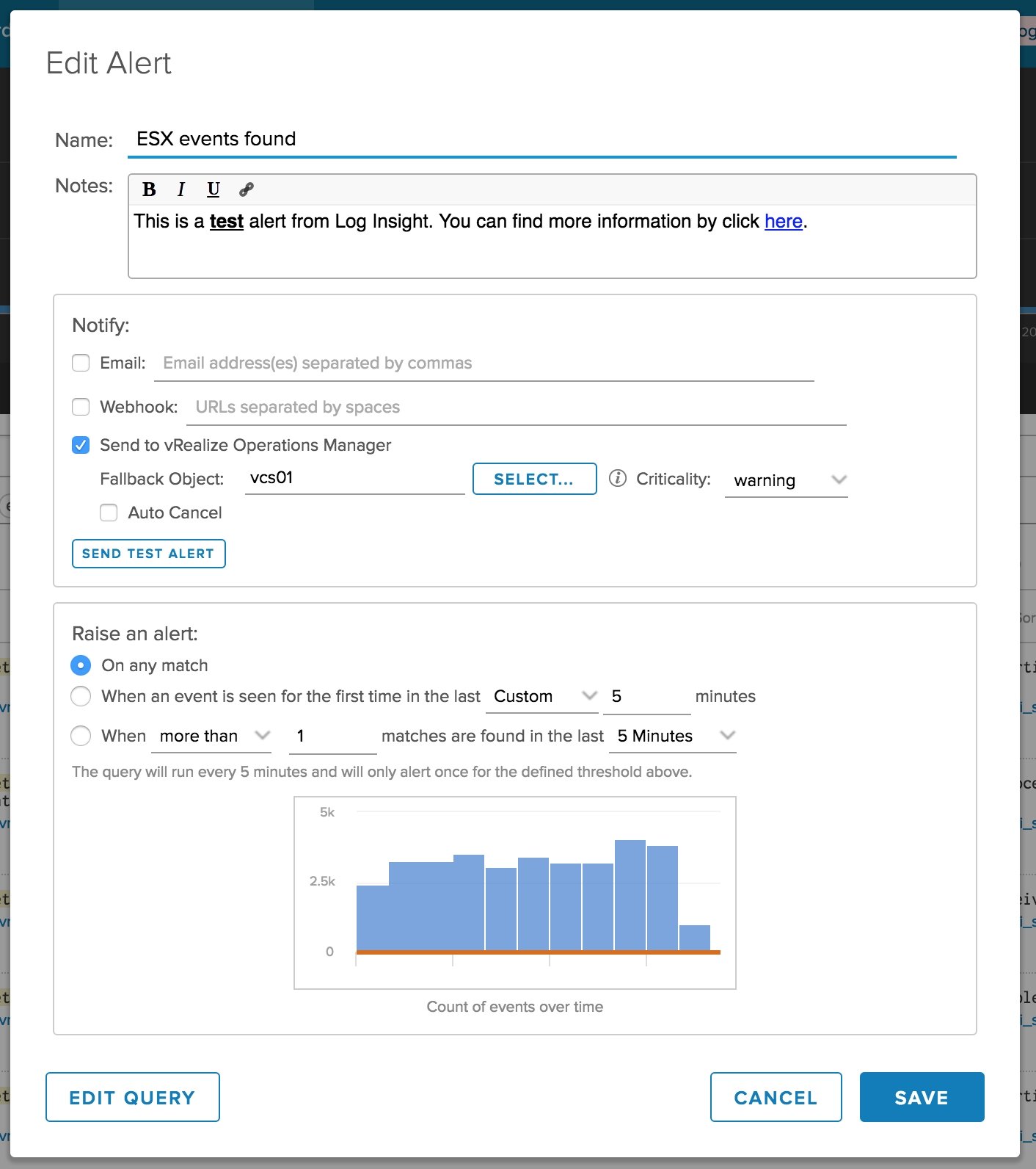Notification event – “Log Insight: <Log Insight alert name>”
