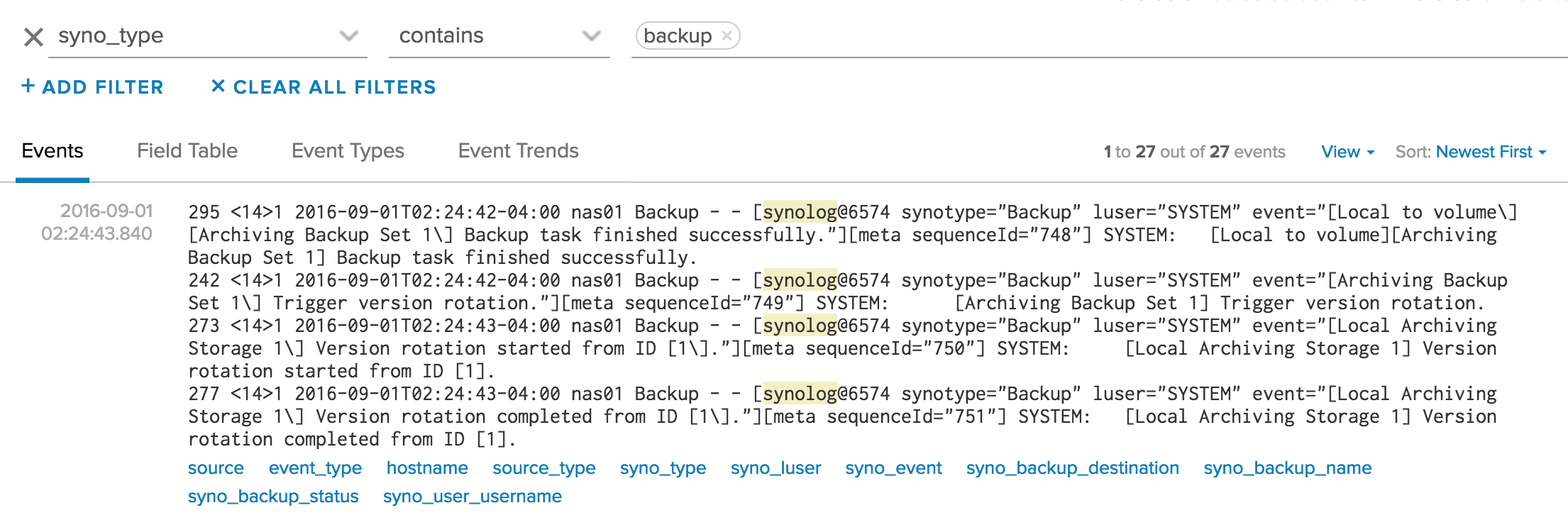 The solution was simply to add support for octet-framing. No configuration changes necessary — simply upgrade to Log Insight 4.0 and octet-framing works. Here is the same example of Synology DSM messages in Log Insight 4.0: