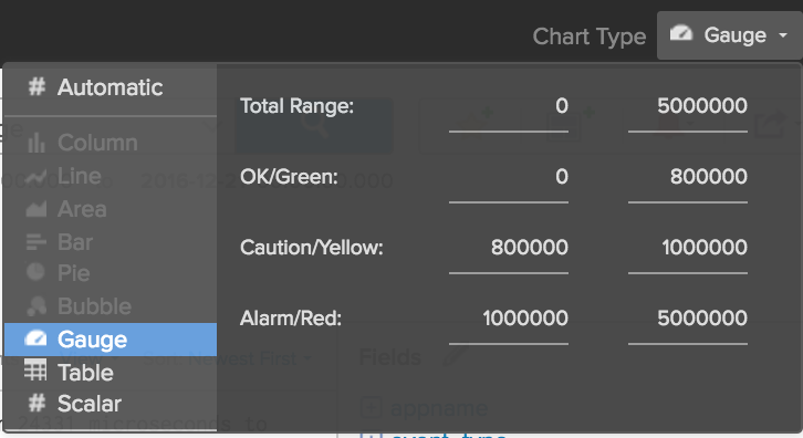 A gauge chart or speedometer chart allows you to visualize numeric data and set thresholds based on values. As an example, think of metrics such as CPU usage. For most systems, 0-70% CPU usage is probably normal or “green,” 71-90% may be worrisome or “yellow,” and 91-100% may be cause for concern or “red.” A gauge chart allows us to visualize data in this way.