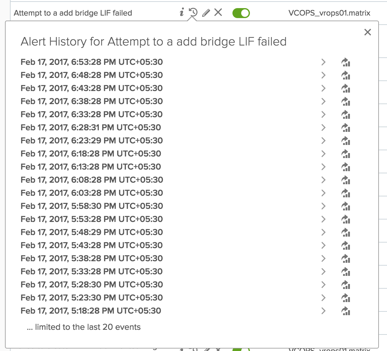 - Each entry displays the time the alert fired which can be expanded to show the details