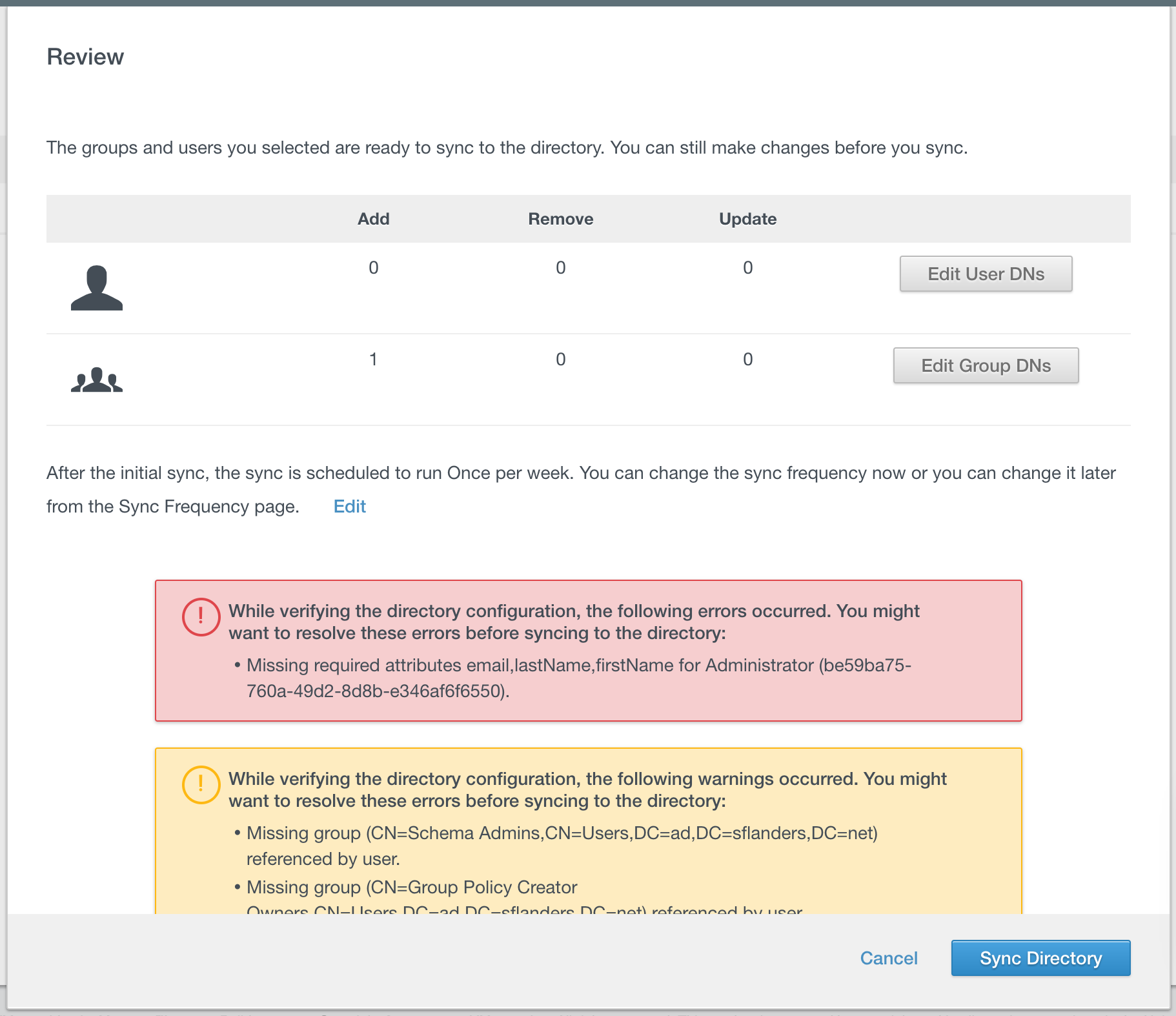 When you are happy with the configuration you can then sync the directory.