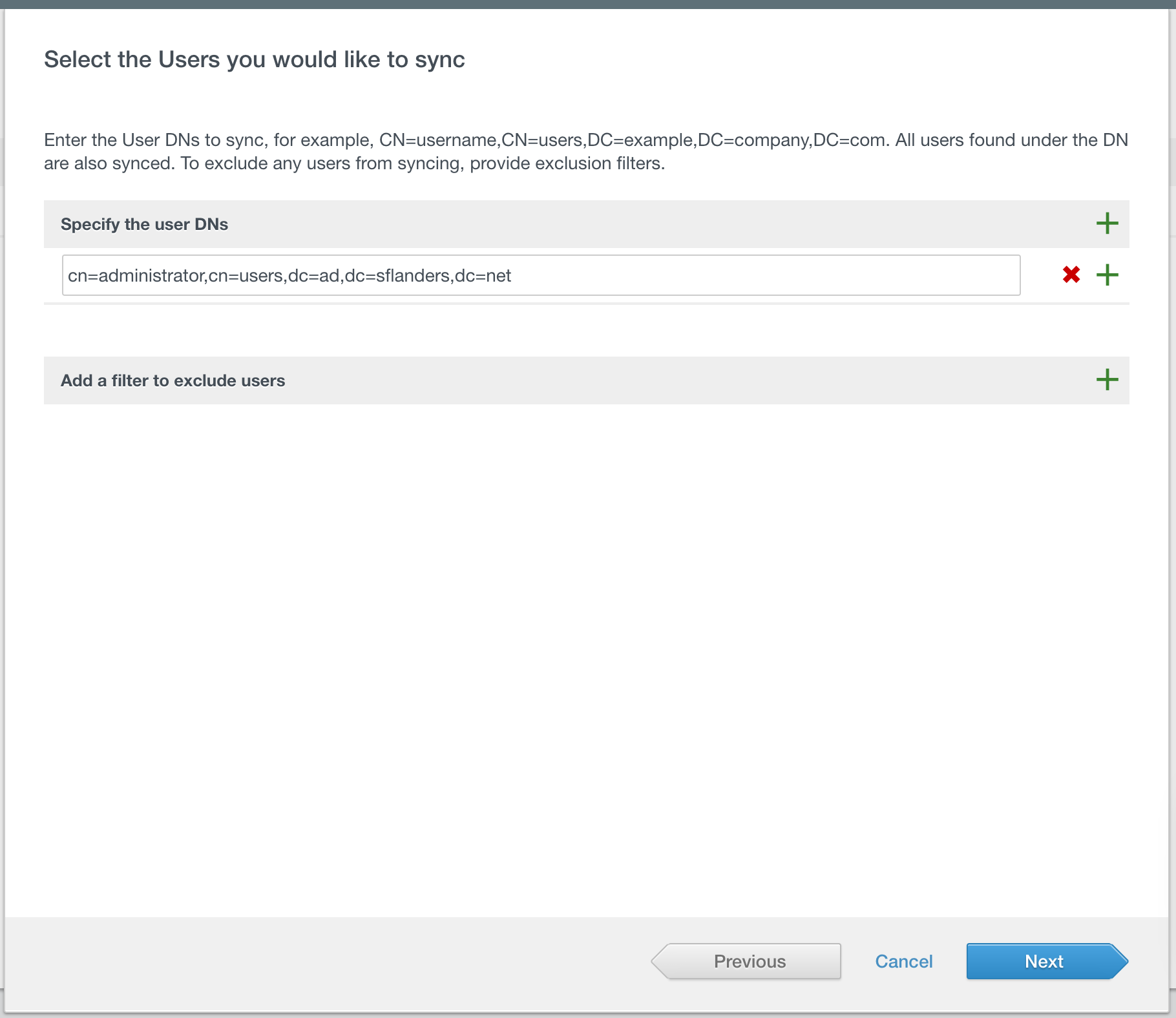 IMPORTANT: You should make the DN as specific as possible. For large domains, a DN which returns a lot of results may slow down VIDM.