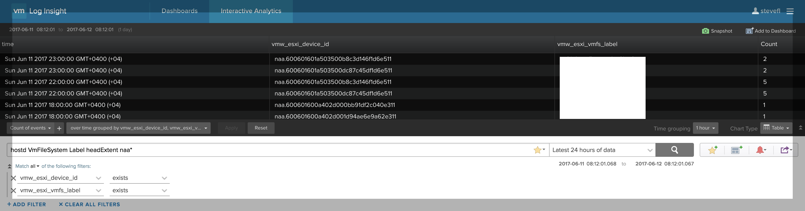- “filter”:“hostd VmFileSystem Label headExtent naa*”