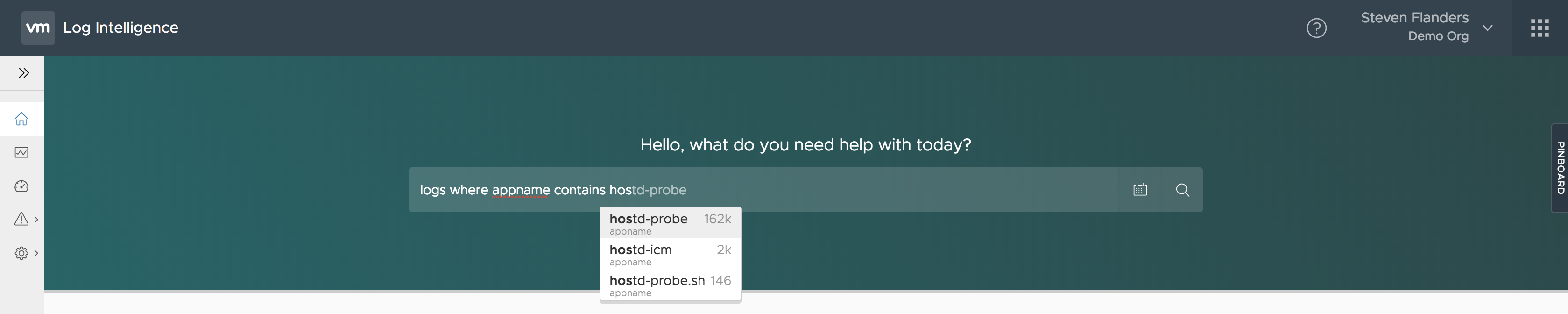The home page search bar in Log Intelligence is very powerful. As you would expect, it allows you to search for keywords and offers autocomplete. In addition to these expected features, it also offers two additional benefits: