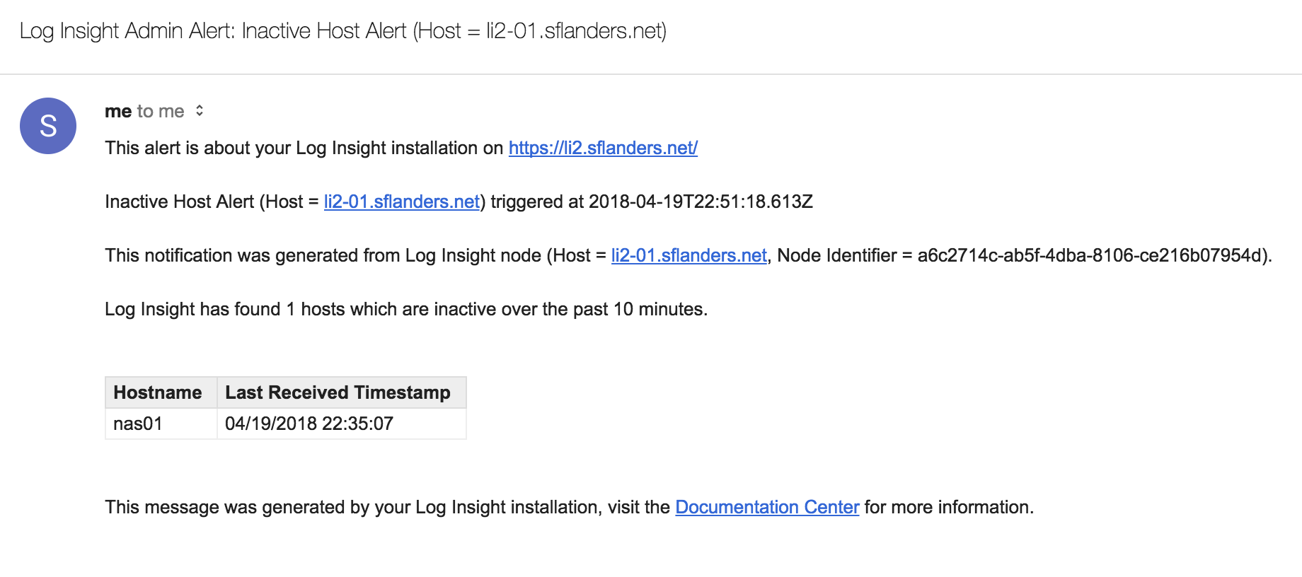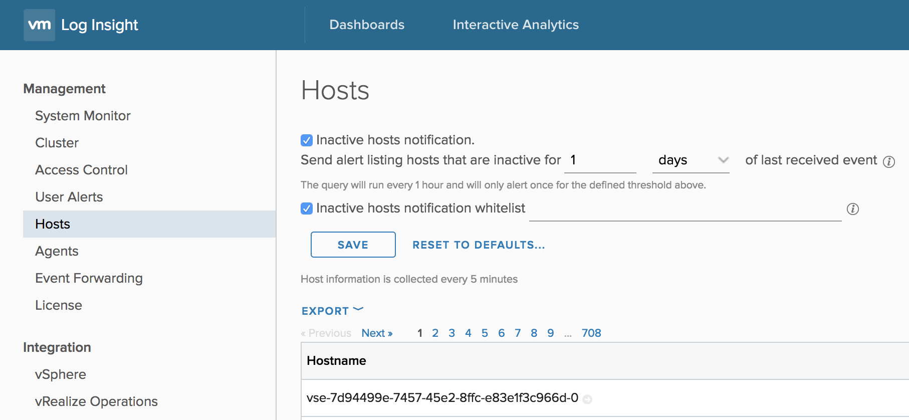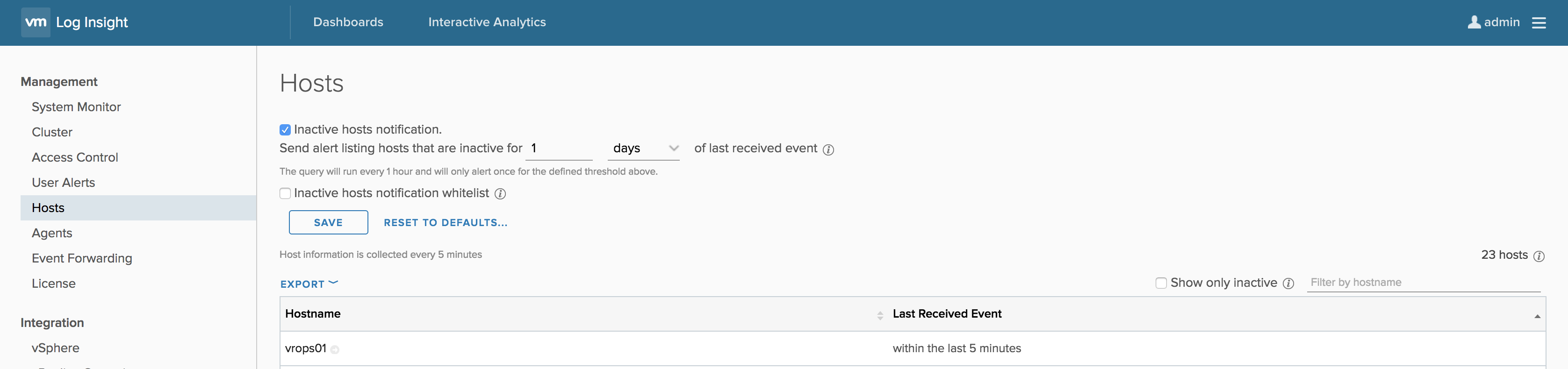 You asked, Log Insight listened! Now you know when hosts are no longer reporting to Log Insight. This is a really cool feature! What do you think?