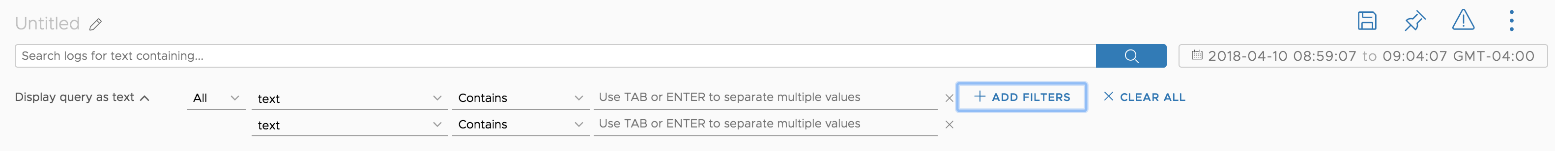- Filters support a field, operator, and values. Multiple filters can be AND or OR together. (Note: This is the same as Log Insight)