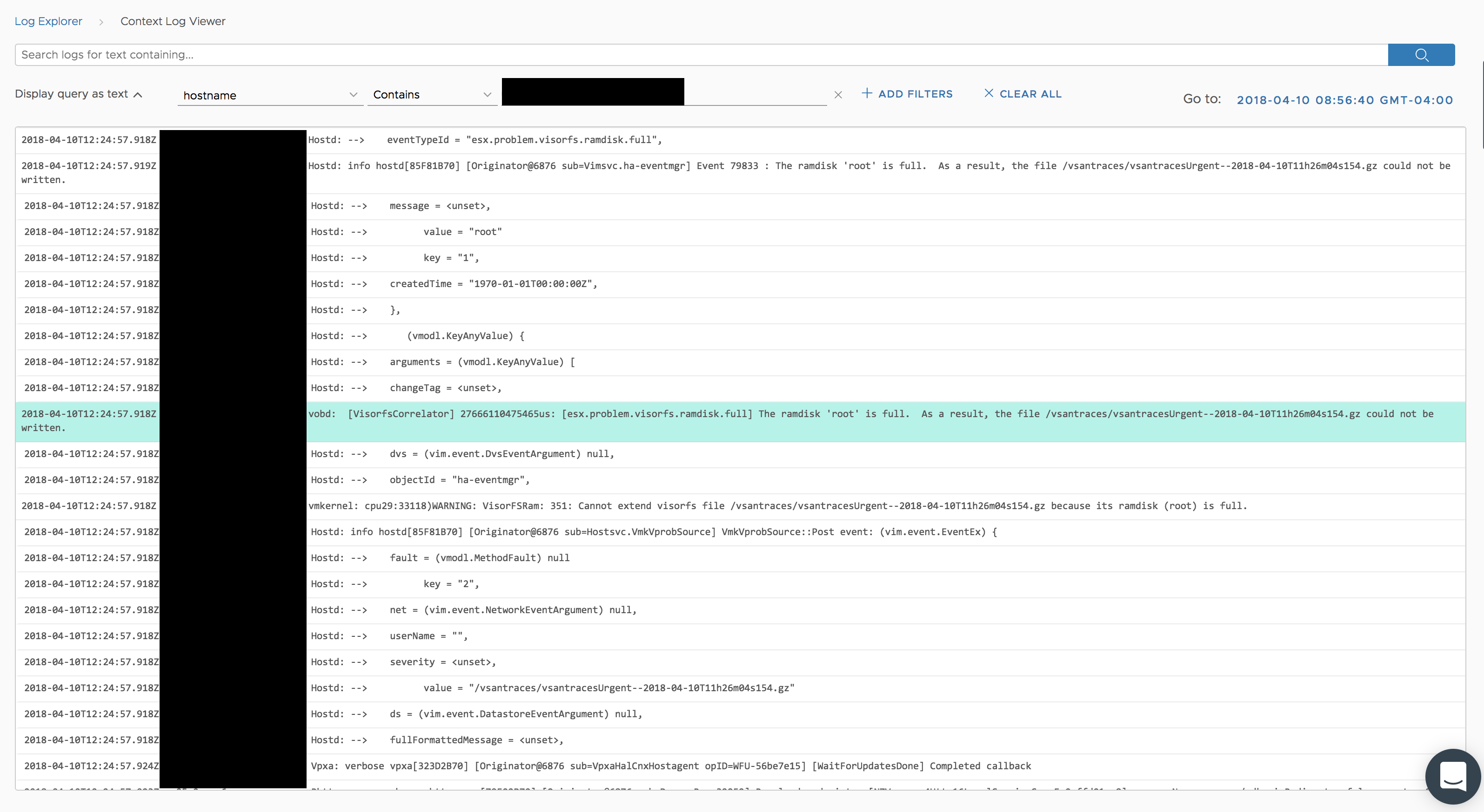 View in Context shows you the event you pivoted on and the events that happened before as well as after that event. By default, the hostname and/or filepath fields are added to the query (if available) though the context query can be changed as desired. (Note: This is all like Log Insight except the hostname and/or filepath fields being added to the query)