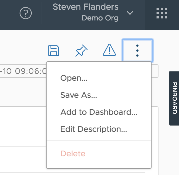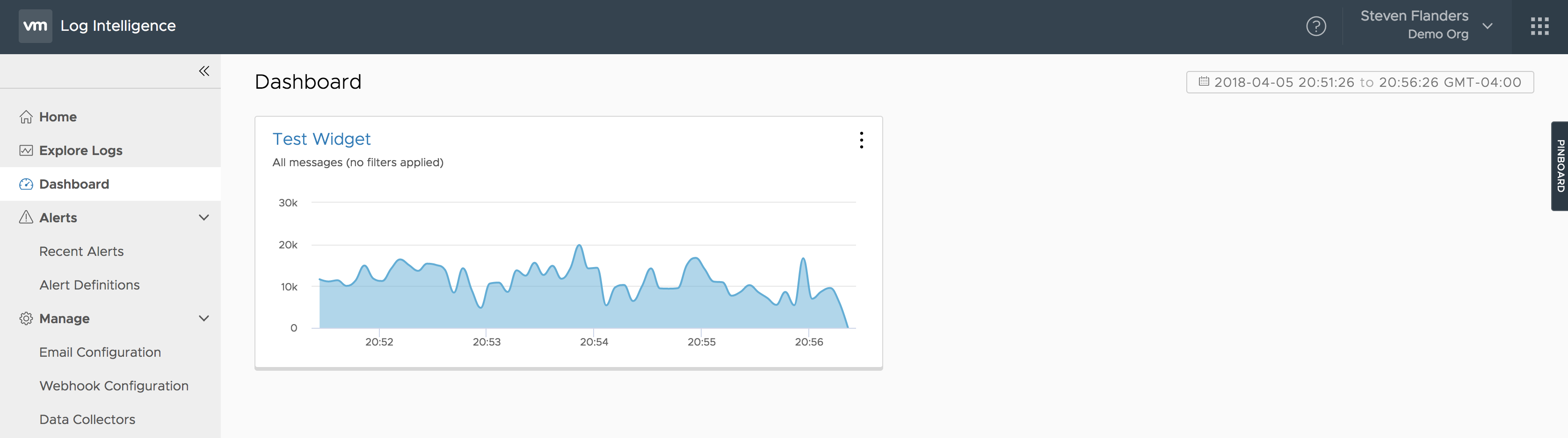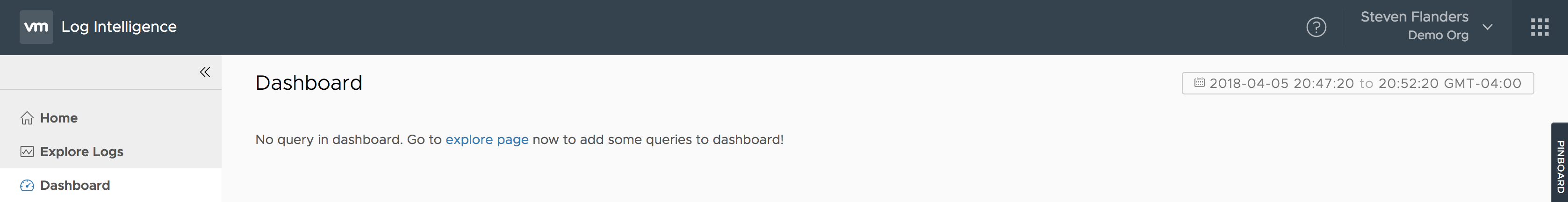 - There is a single Dashboard page, and it is organization-specific (think Shared Dashboard from Log Insight)