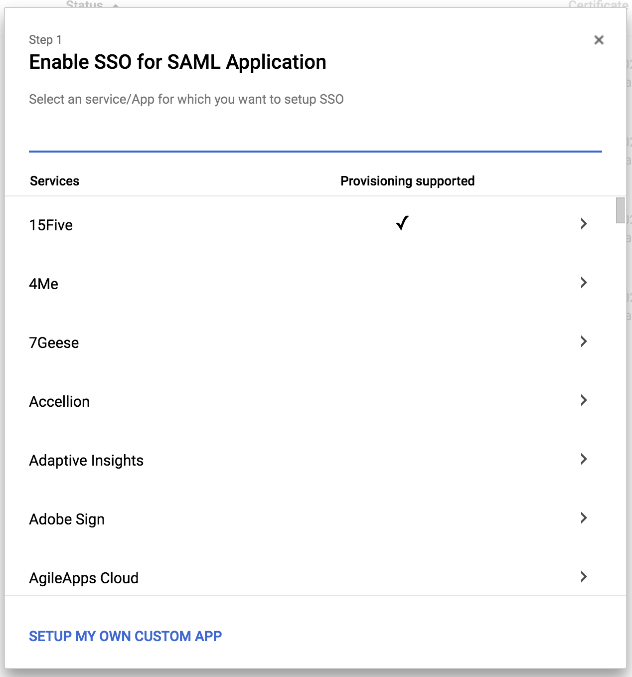 When you add a SAML app to G Suite using the built-in services, the icon shown is generic and not related to the service: